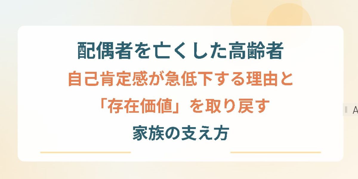 配偶者を亡くした高齢者:自己肯定感が急低下する理由と「存在価値」を取り戻す家族の支え方