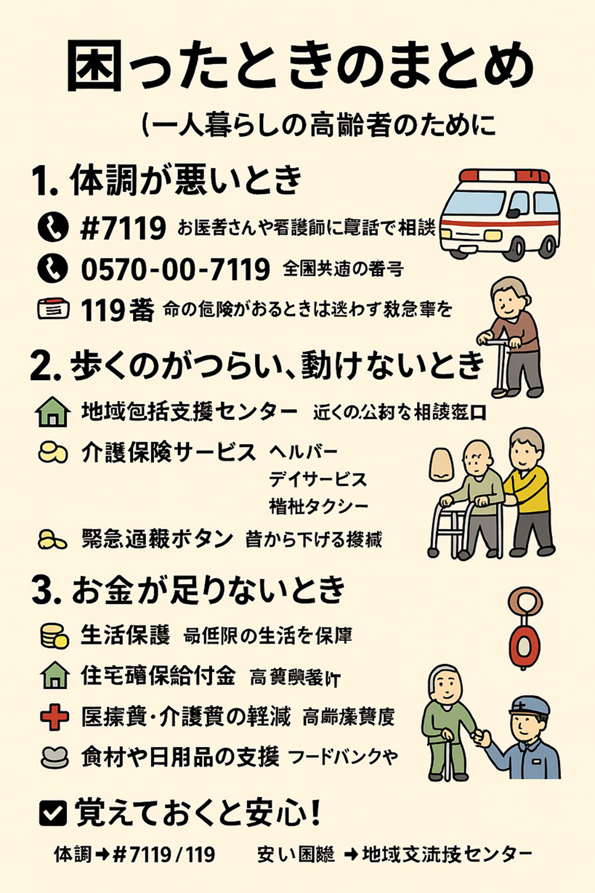一人暮らし・困ったときのまとめ|#7119・地域包括支援・生活支援制度・見守りサービス