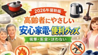 【2026年最新】高齢者の方が安心して使える『簡単・安全・迷わない』家電と便利グッズを厳選。火の不始末や転倒防止など、ご本人とご家族の不安を解消するおすすめ商品を分かりやすく解説します。プレゼント選びにも最適です。