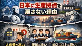 026年現在、AI・産業ロボットが発展する中、日本企業が生産拠点を日本に戻さない理由を詳しく解説。中国依存のコスト・市場・サプライチェーン問題、安全保障リスク、脱中国の最新動向まで。国内回帰の可能性を探るブログ記事です。