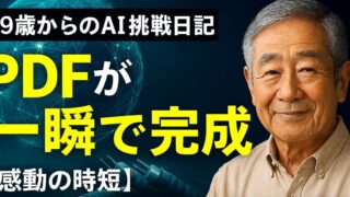 79歳からのAI挑戦日記 79歳からのAI挑戦日記:【感動の時短】チラシPDFが一瞬で完成!シニアも実感する時代の激変 困ったときのまとめPDFダウンロードはこちら(無料)【AI活用体験記】高齢者支援PDFをAIで一瞬作成|時代の変化を実感した瞬間AIで「困ったときのまとめ」を作成!その感動と時代の激変79歳の私が実感!AIによるコンテンツ制作の衝撃と感動(... 2025.10.01 79歳からのAI挑戦日記
