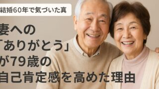 家族ができる高齢者の自己肯定感向上サポート 結婚60年で気づいた真実:妻への「ありがとう」が79歳の自己肯定感を高めた理由 (adsbygoogle = window.adsbygoogle || []).push({});結婚60年を迎える私が、最近になって気づいたことがあります。妻への感謝の気持ちが、自分自身の自己肯定感も高めているということです。今日は夫婦... 2025.10.20 家族ができる高齢者の自己肯定感向上サポート
