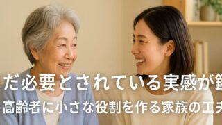 家族ができる高齢者の自己肯定感向上サポート 「まだ必要とされている」実感が鍵|高齢者に小さな役割を作る家族の工夫 (adsbygoogle = window.adsbygoogle || []).push({});はじめに自己肯定感を高めるために最も効果的なこと。それは「役割を持つこと」です。79歳の私が実感している、役割の重要性についてお話しします。... 2025.10.18 家族ができる高齢者の自己肯定感向上サポート