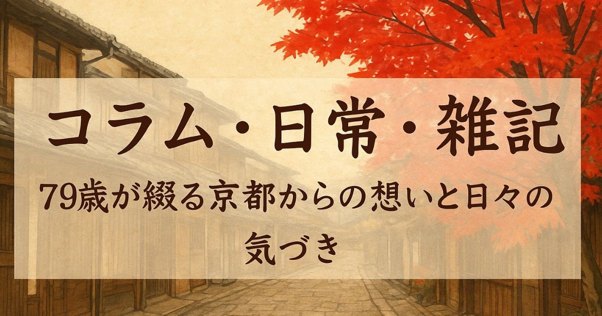 音楽、季節、思い出、後悔、喜び、発見――日々の暮らしの中にある、小さな出来事や大きな想い。79歳の私が、京都から綴る等身大のコラムです。