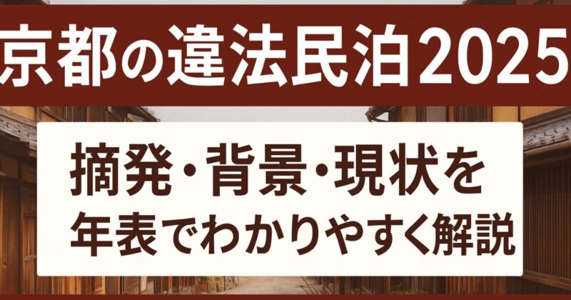 - 2025年現在、京都市内で違法民泊がなぜ摘発され続けているのか、その具体的な背景データがわかります。