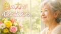 明るい色を見ることで、視覚刺激が脳の視床下部に伝わり、 自律神経が整いやすくなるという研究もあります。 特に高齢者はセロトニン分泌が低下しがちですが、 明るい色はその補助的役割を果たす可能性があります。